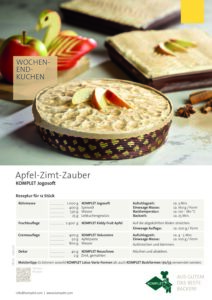 Unser Apfel-Zimt-Zauber Kuchen aus KOMPLET Jogosoft bringt herbstliche Gemütlichkeit in jede Kuchentheke: Eine helle, lockere Joghurt-Sandmasse trifft auf eine saftige Apfelfüllung und eine sahneähnliche Aufschlagcreme – fein abgestimmt und herrlich luftig. Bestäubt mit Zimt-Neuschnee erhält der Kuchen seine aromatische Krönung. In der praktischen Papierbackform gebacken und mit langer Frischhaltung ist er der perfekte Wochenendkuchen für Genießer.