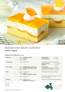 Unsere neue Mandarinen-Mohn-Schnitte aus KOMPLET Jogosoft vereint feine Aromen in einer modernen Gebäckkreation: Eine lockere, helle Joghurt-Sandmasse bildet die Grundlage für fruchtige Mandarinen-Orangen und eine zarte Mohn-Creme. Das Ergebnis ist eine erfrischende, harmonisch abgestimmte Schnitte mit luftigem Biss und feinem Geschmack – perfekt für die leichte Kuchenauswahl mit besonderem Twist.
